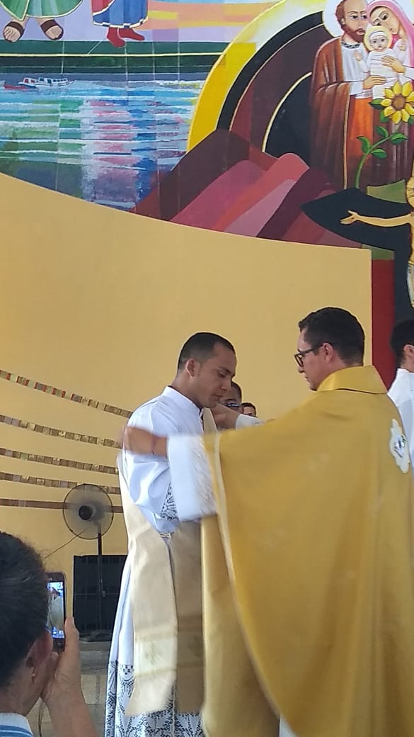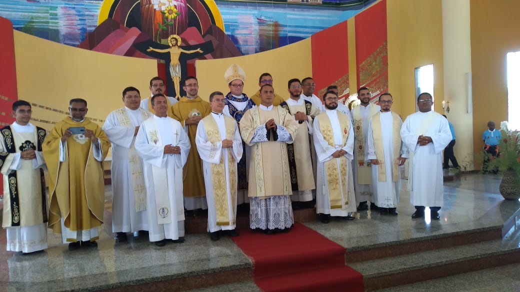 Por tudo isso confesso que estou com o coração vibrando de alegria, pois com a ordenação diaconal faço a minha consagração a Deus e ao serviço do seu Reino. É mais uma graça que se realiza em minha vida. Desde criança, desejo ser sacerdote e o diaconato é mais um passo rumo a este grande ministério. Estou pronto para anunciar a insondável riqueza do seu Evangelho. Em todo o meu processo formativo, quem me sustentou e me segurou foi o Senhor. Por isso peço a oração do povo de Deus da Diocese de Marabá para que possa desempenhar com ardo a missão na Paróquia de São Domingos de Gusmão em São Domingos do Araguaia-PA. E perseverante com Maria a mãe de Jesus e São José Dormindo meu santo de devoção, eu possa ser fiel ao ministério que da Igreja recebi pela imposição das mão de dom Vital. Que Deus e Nossa Senhora do Perpétuo Socorro padroeira de nossa Diocese abençoe a todos![]()